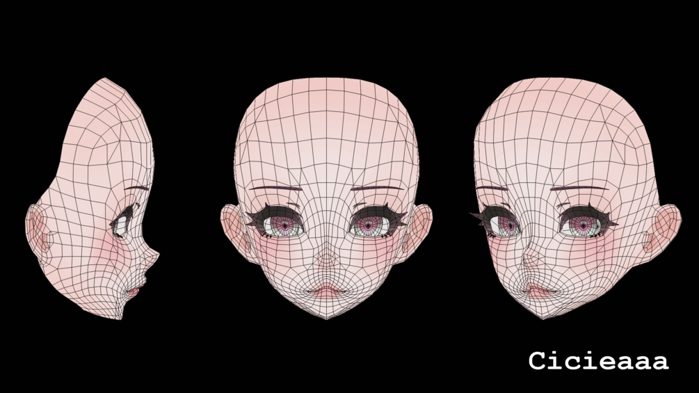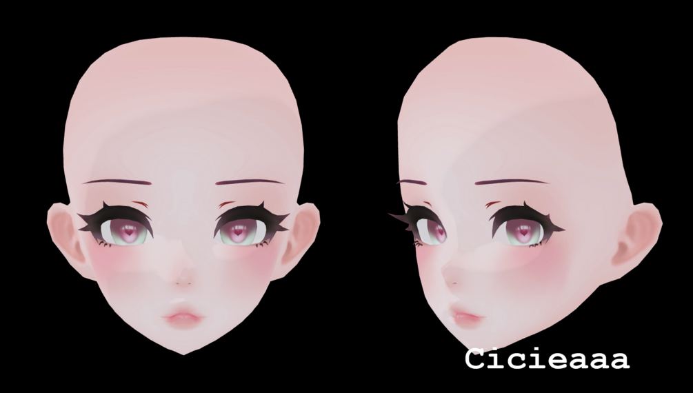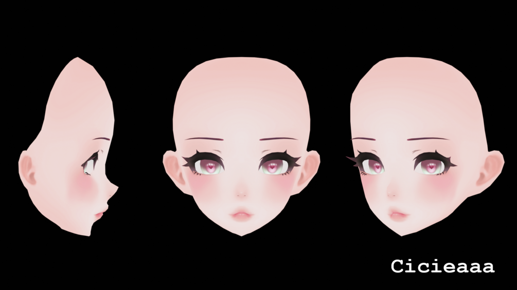 Model has three materials: Skin,transparent part(such as "Blush") and a eyes material